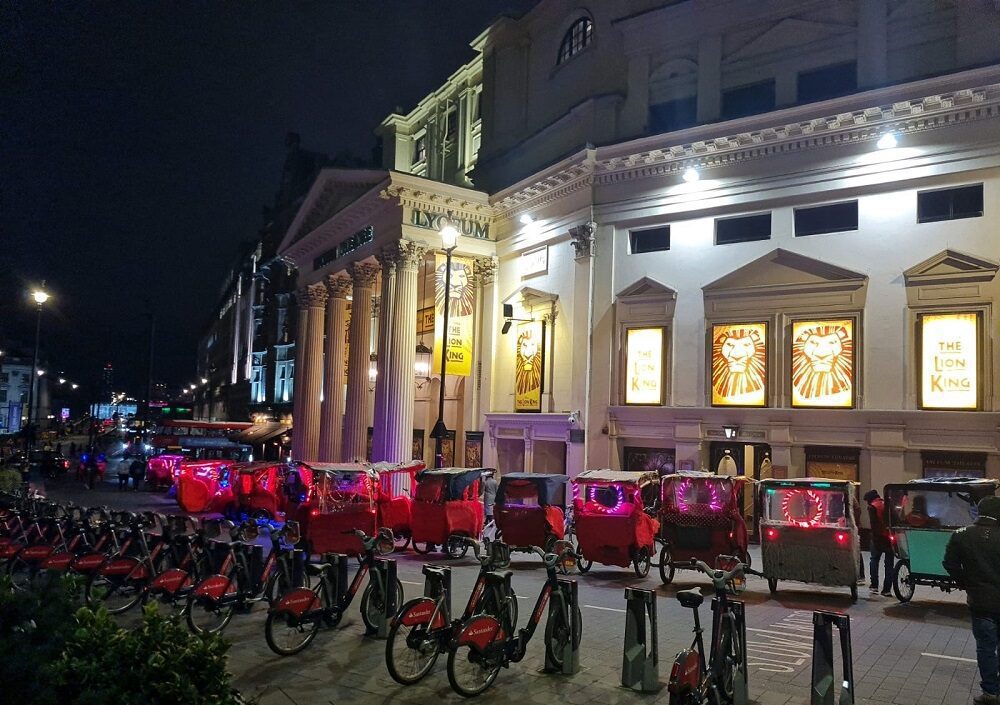 Pictured top: Pedicabs outside the Lyceum theatre in February 2022 (Picture: Westminster city council)