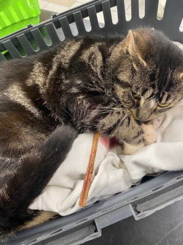 PDSA Vet Malcolm Fletcher said: “The X-rays revealed the bamboo stick had gone in between two ribs and punctured the chest wall.