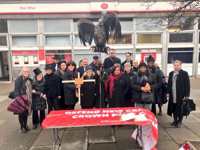 On Saturday, February 10 residents and campaigners held a ‘Valentine’s Day Massacre’ mourning demonstration outside New Cross Gate crown post office, pictured above.