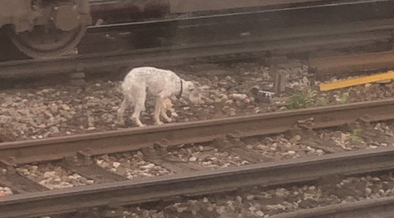 Pip the pooch’s near miss with electric rail line at Waterloo train station