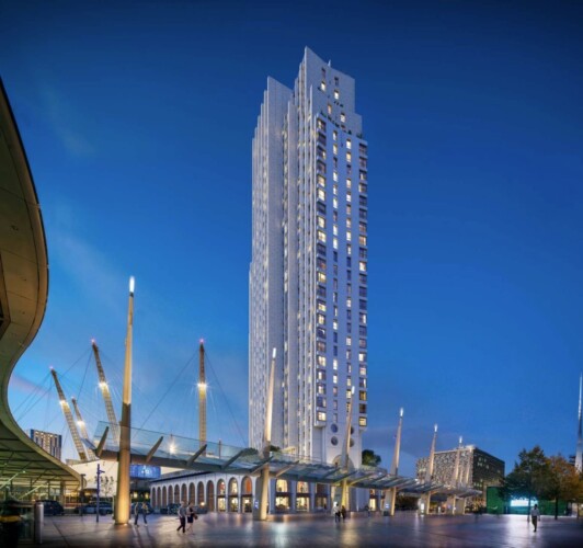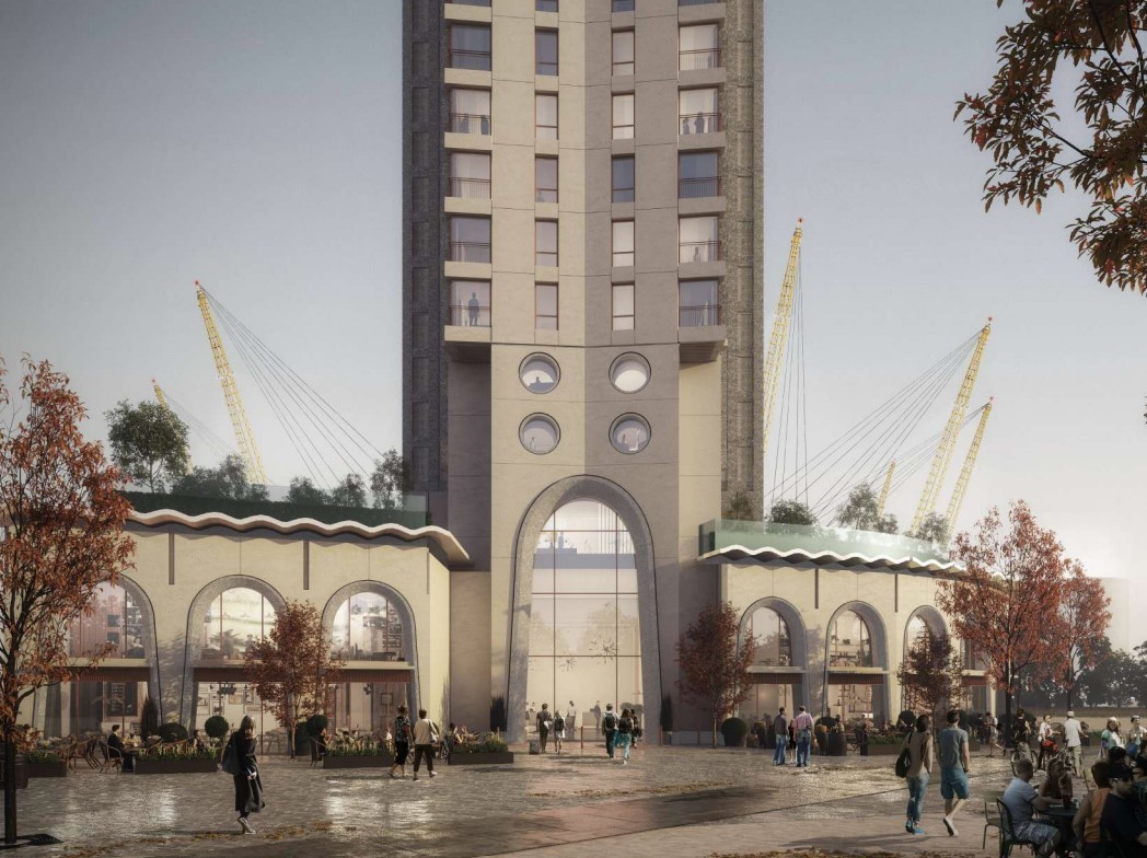 Plans for a 36-storey tower block beside the O2 Arena in Greenwich have been approved.