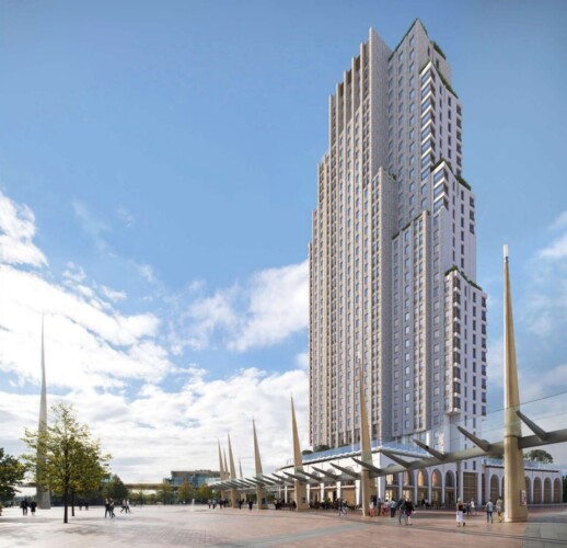 The new tower block in Peninsula Square will include 820 student rooms, 35 per cent of which will be ‘affordable’.