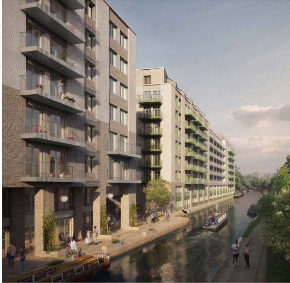 It said the project “seeks to transform this length of the Grand Union canal, currently obscured by sheds and piles of tyres into a place which future residents, members of the public and canal-dwellers can take delight in.”