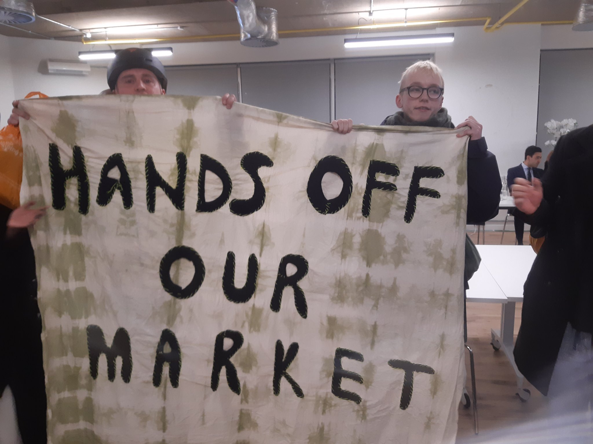 Police attended as members of the Protect Shepherd’s Bush Market campaign group continued to chant and wave a banner during the session. No arrests were made, with the meeting eventually cancelled and the public leaving of their own accord.