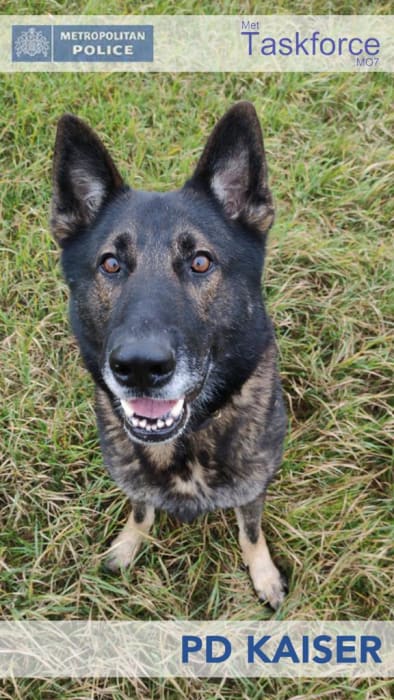 Superintendent Emma Richards, from the Met’s Taskforce, which includes the Dog Support Unit, said: “I want to pay tribute to Kaiser and PC Woolcott for the immense bravery they showed in tackling this armed man.