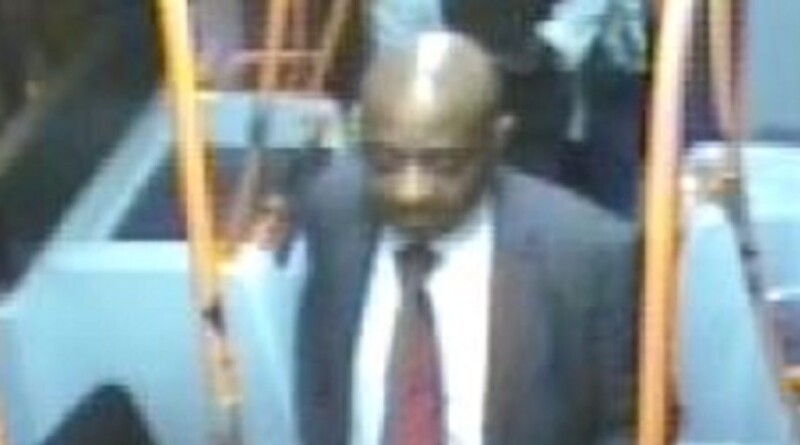He is described as black, around 5ft 9 and aged in his 50s. He is bald and was wearing a black/dark blue suit, white shirt and red tie.