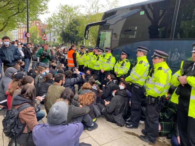Protesters arrested after blocking coach in Peckham over asylum seeker transfers
