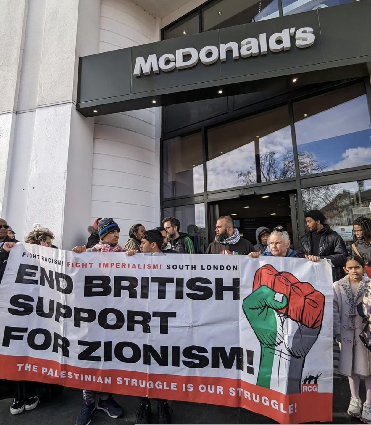 A spokesman from FRFI South London said: “High street businesses such as McDonald’s profit from selling products produced on Palestinian land stolen by Israel, and banks such as HSBC and Barclays fund the arms companies that murder Palestinian children.”