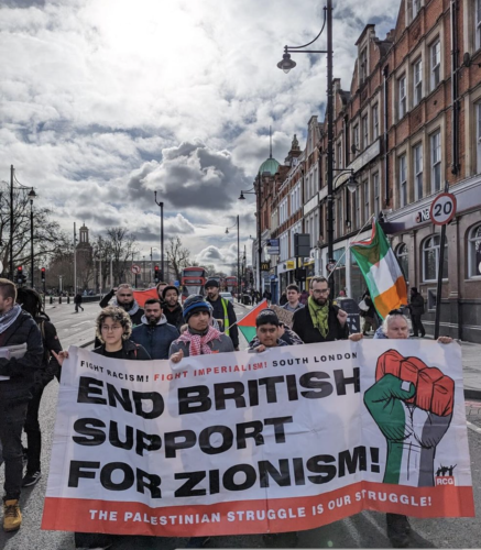 Activists from the South London branch of Fight Racism Fight Imperialism (FRFI) and the Revolutionary Communist Group met alongside residents at Windrush Square in Brixton, before setting up pickets outside high street businesses like McDonald’s to highlight the corporation’s support of Israel during its conflict with Palestine.