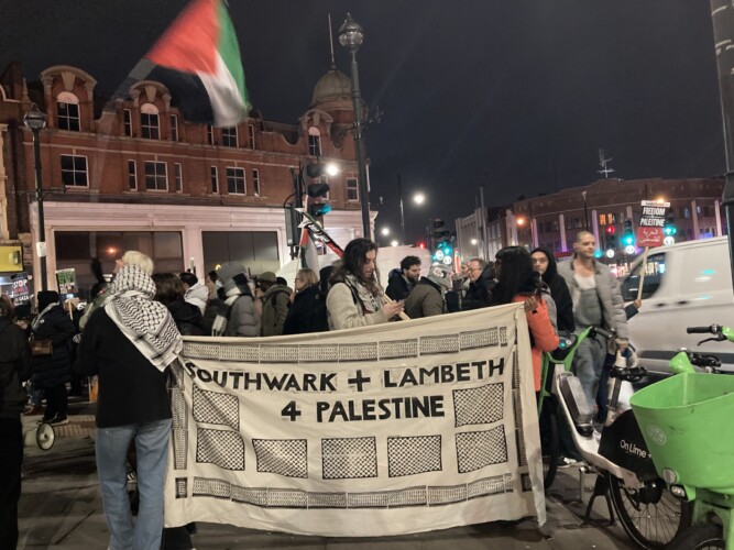 The group stood up and unfurled Palestinian flags in the public gallery at a Lambeth council meeting on Wednesday evening (January 24) after Labour councillors voted against a motion brought by the Green Party calling for ‘an immediate ceasefire and the end to human rights atrocities in the Israel/Palestine conflict’.
