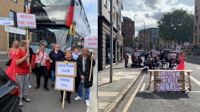 Protesters gathered outside their social club on Saturday to fight against a bus lane that has forced many elderly members to stop attending their only social event of the week.