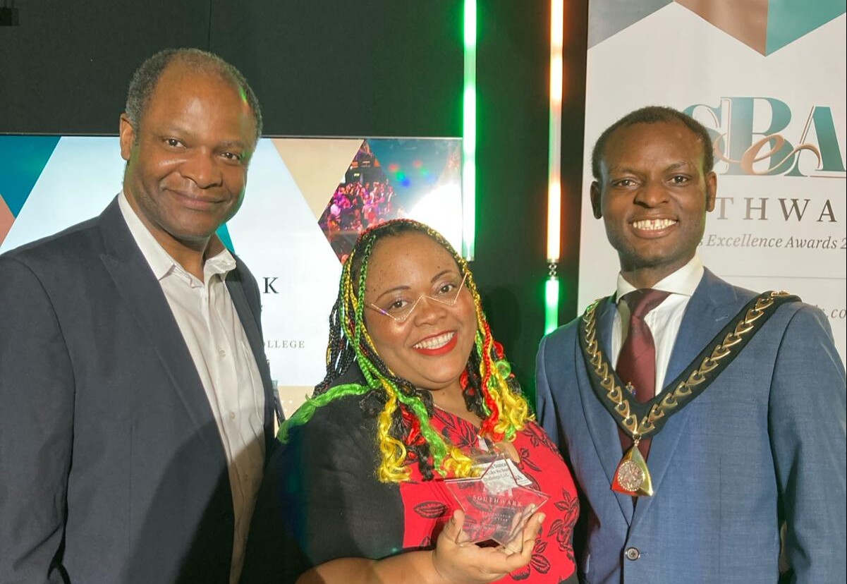 Pictured top: Winsome Duncan (middle) was named Entrepreneur of the Year at Southwark’s annual Business Excellence Awards (Picture: Winsome Duncan)