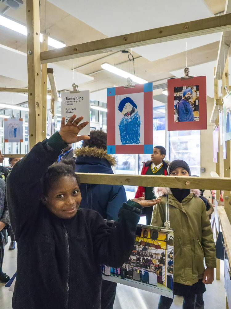 The exhibition is the result of a collaboration between Mountview, independent traders off Peckham’s Rye Lane and school children from Harris Primary Academy Peckham Park. The exhibition is a mix of portraiture in photography, drawing and audio-recorded storytelling.