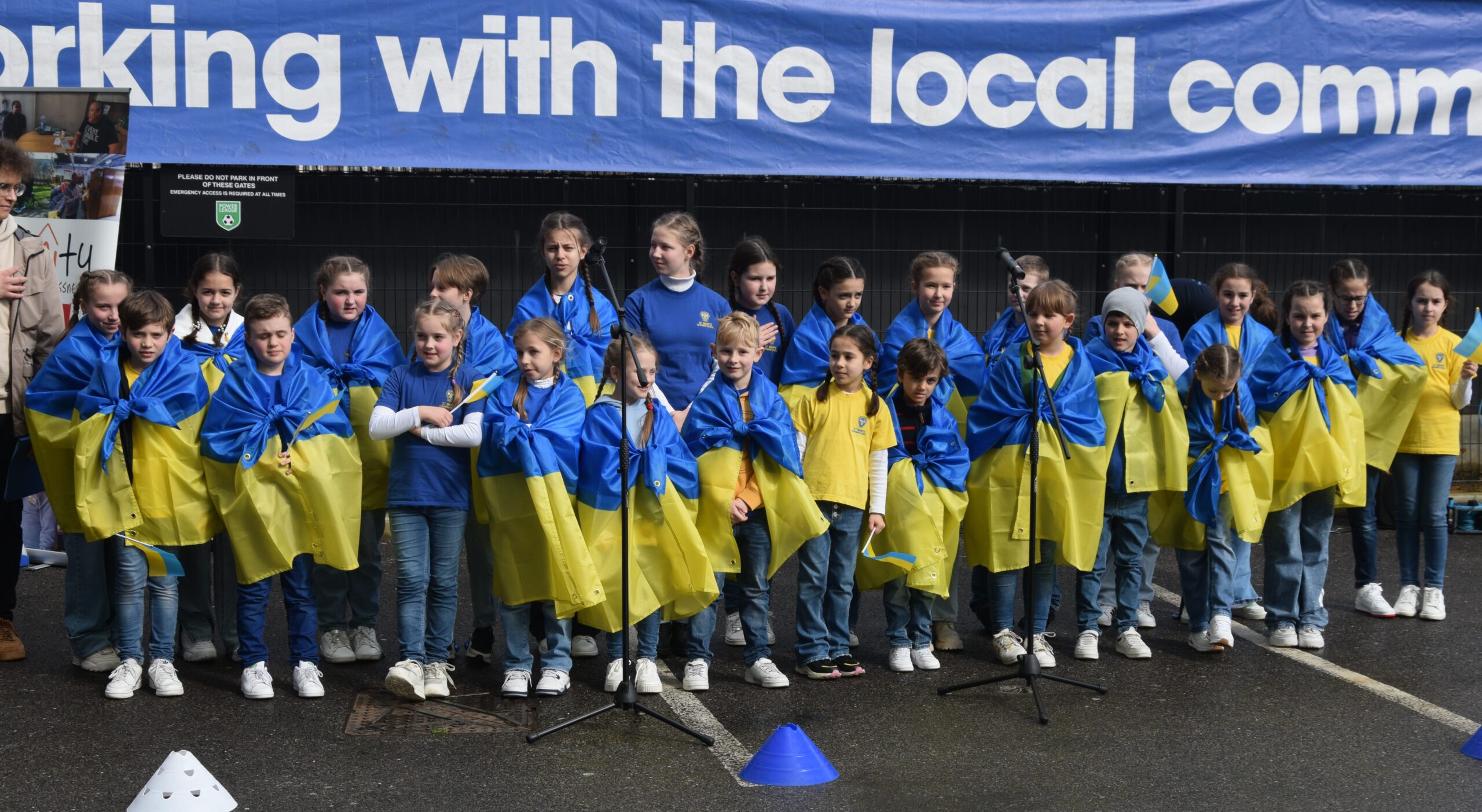Schoolchildren represented Ukraine with a march during the QPR v Birmingham City match.