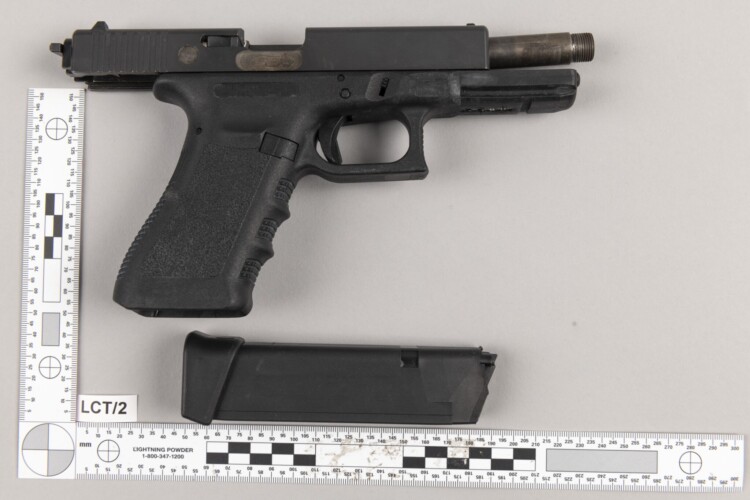 In October 2020, a dry cleaners in Thornton Heath was raided and during the search of an building in the back yard of the premises, a converted Glock pistol capable of fully automatic fire was found in a black zip-up pouch.