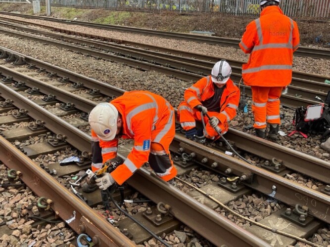 Pictured top: Engineers working on Network Rail track repairs (Picture: Network Rail)