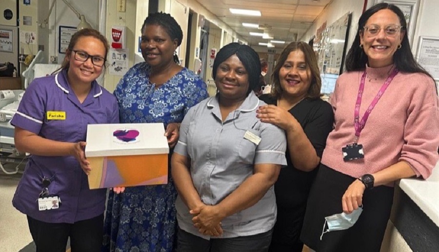 Staff at the Tooting hospital show off the Juliet boxes (Picture: St George’s NHS)
