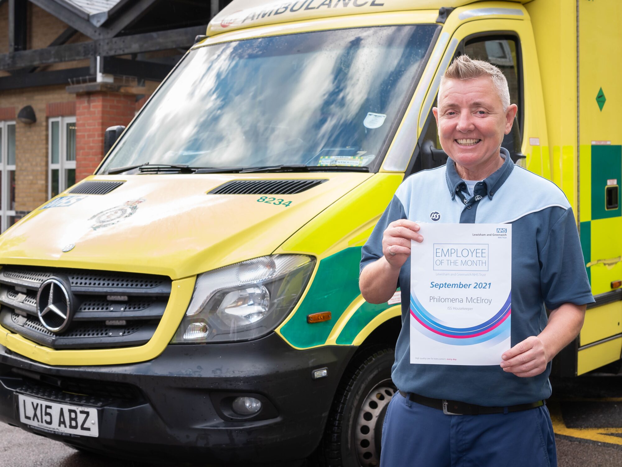 Philomena McElroy, who has worked at University Hospital Lewisham for 35 years, was awarded September’s Employee of the Month.