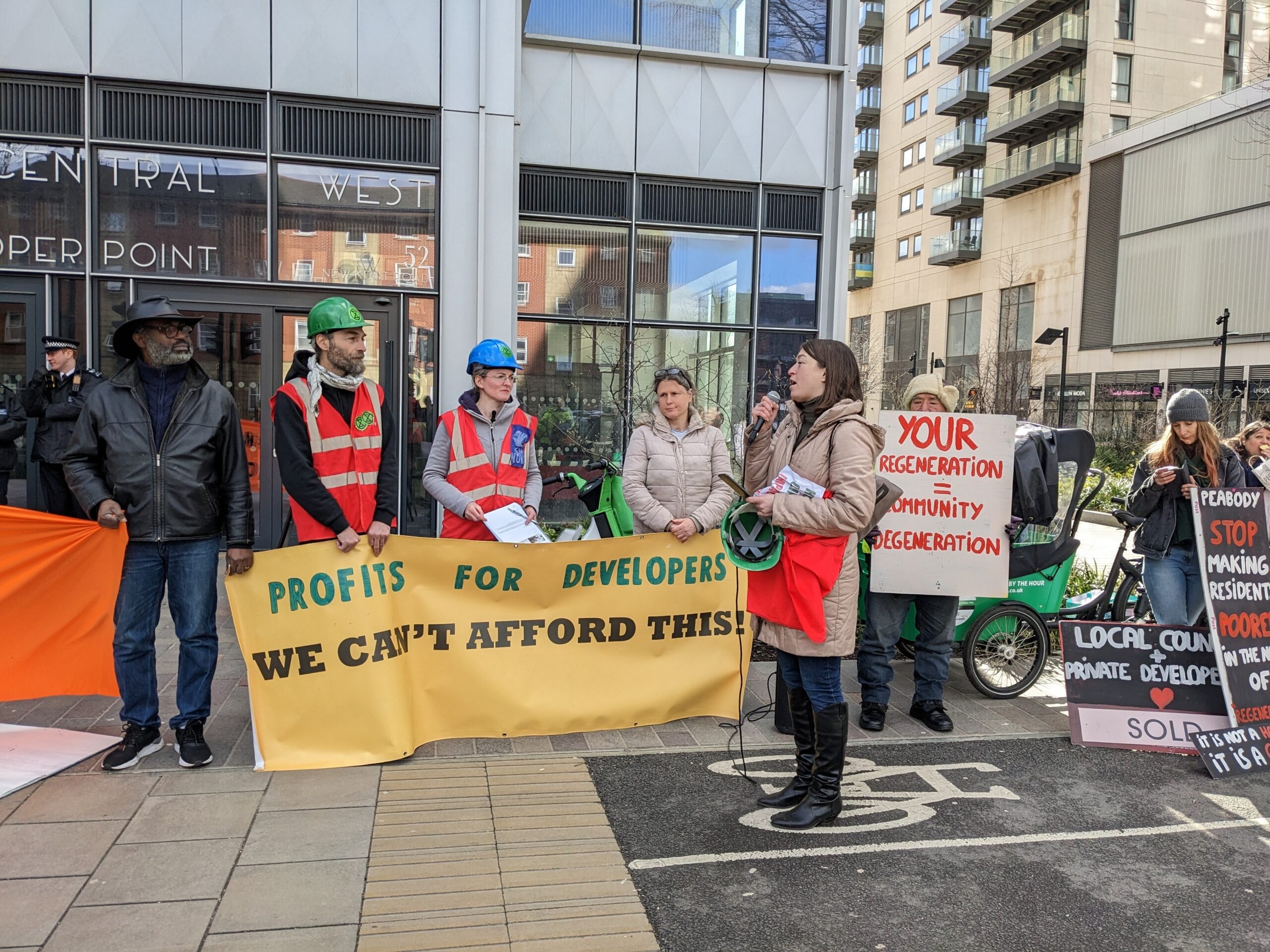 The protesters’ demands included, ‘Refurbish, Don’t Demolish’ and ‘Housing for people and planet, not profit.’