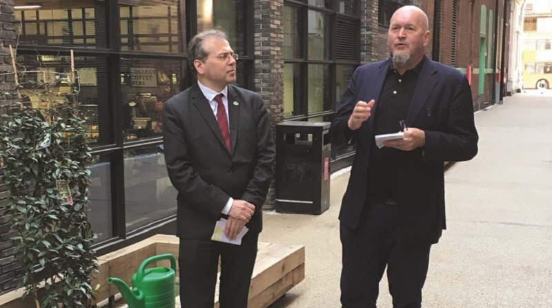 Councillor Richard Livingstone, cabinet member for environment, transport and air quality, and Donald Hyslop, chairman of Better Bankside, were joined by people who live and work in the area, to celebrate the sustainable transformation of Keppel Row, the alleyway that links Southwark Bridge Road and Great Guildford Street.