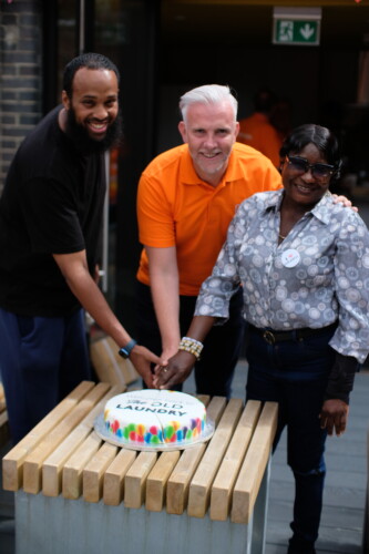 Councillors Mahamed Hashi and Tina Valcarcel marked the re-opening with the cutting of a special ‘Welcome back to the Old Laundry’ cake.