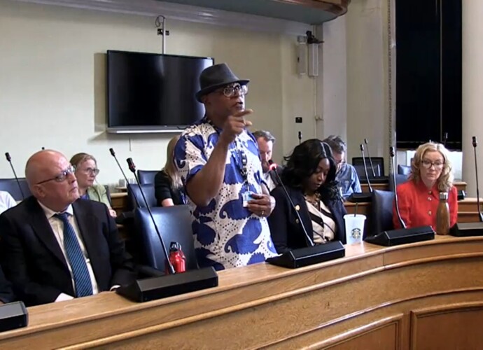 Pictured top: Councillor Donatus Anyanwu defended the use of Brockwell Park for events at the Lambeth council meeting (Picture: Screenshot of Lambeth council meeting)