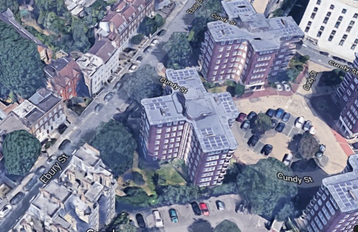 Ebury St & Mozart Terrace w the Cundy St estate, Google Street View