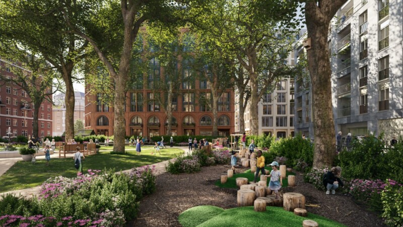 Artists impression Ebury Square Gardens, part of Cundy st area redevelopment, image Grosvenor & DSDHA