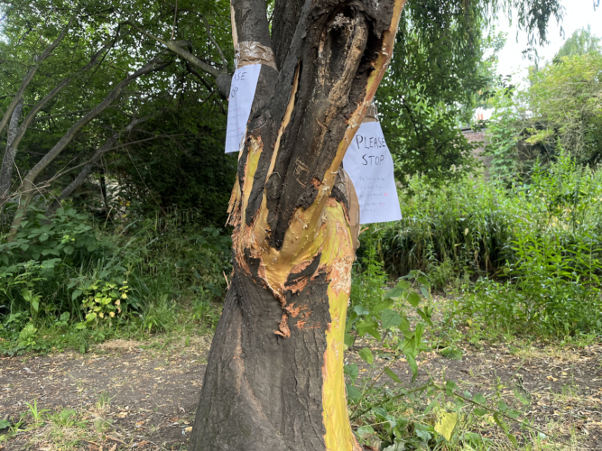 Three trees have been stripped of their bark in Manor Park (Picture: Lillie Harris)