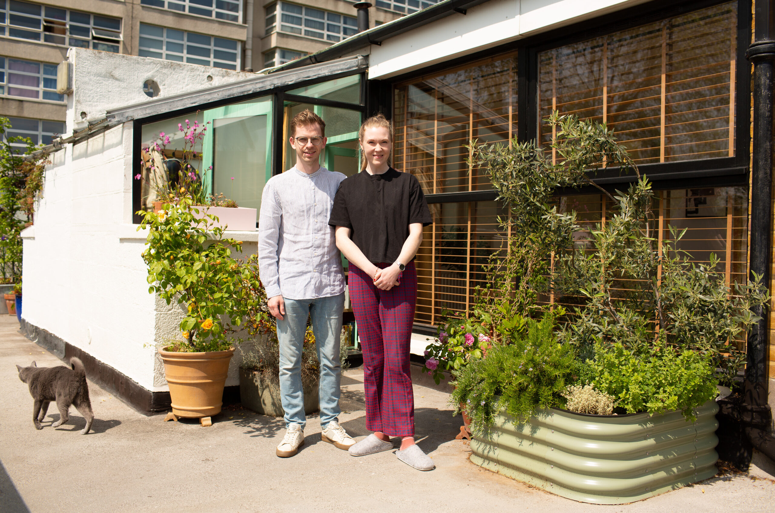 Pictured top: Douglas Harrison and Beth Higham-Edwards shown in the front garden of their flat on the Vanbrugh Park estate (Picture: Phineas Harper)