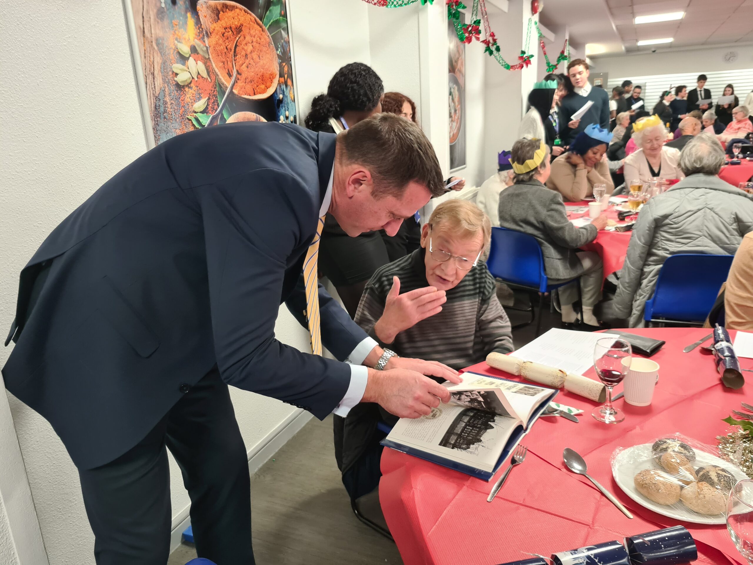 Elderly residents and refugees were welcomed to a Church of England school for a Christmas lunch – and among those taking up the offer was a former pupil from the 1950s.
