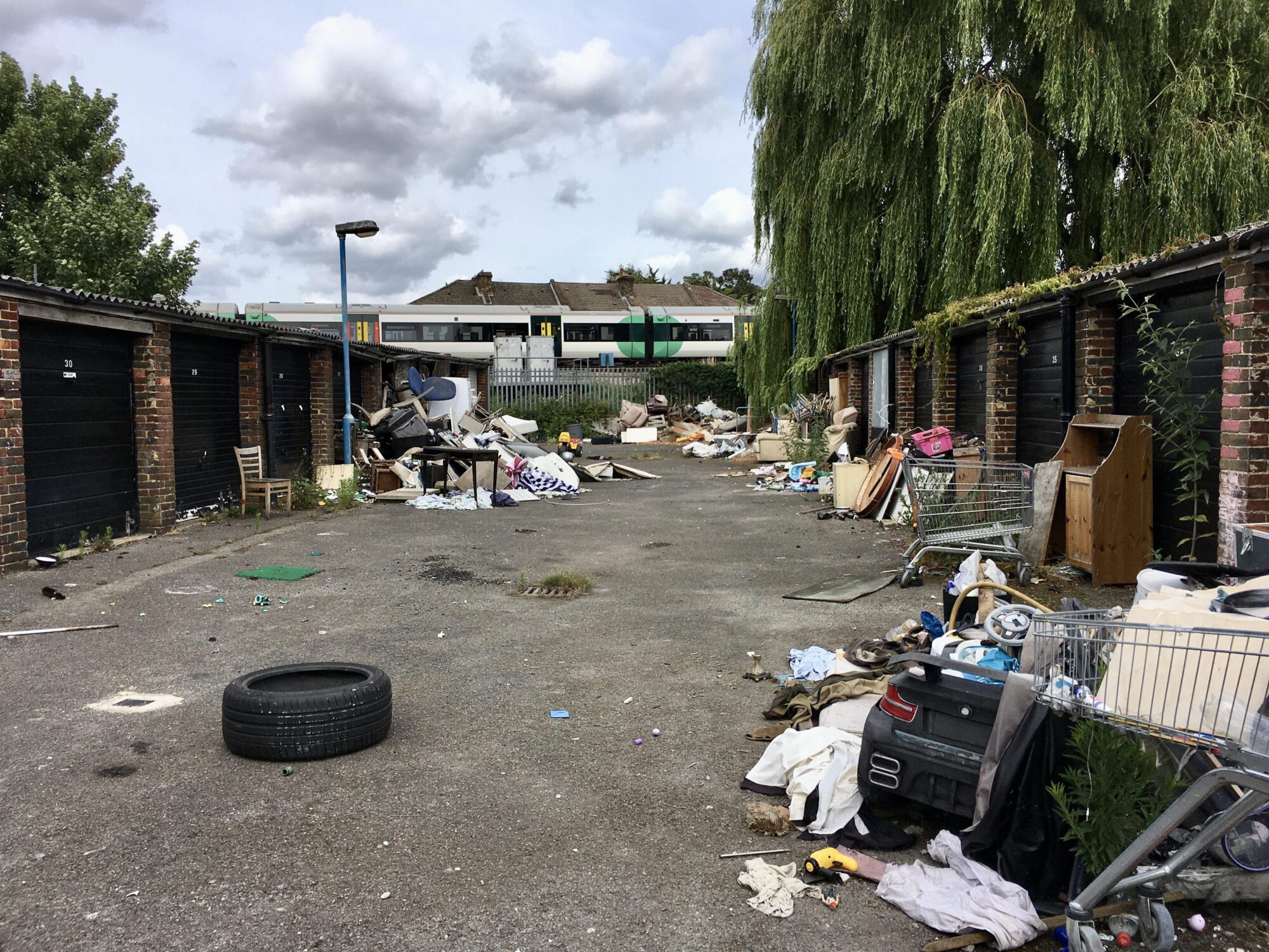 Pictured top: Rubbish outside garages in Holmesdale Road (Picture: Tara O’Connor)