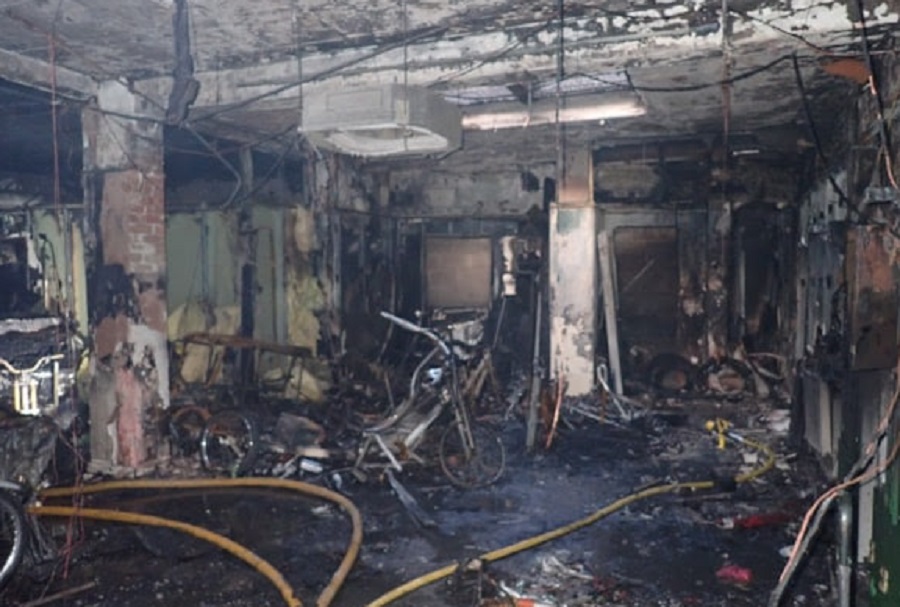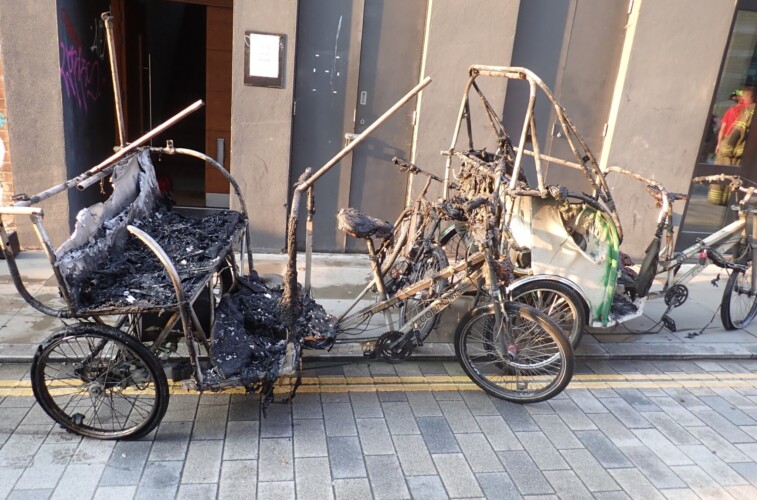 Scene of devastation after inferno at pedicab storage unit