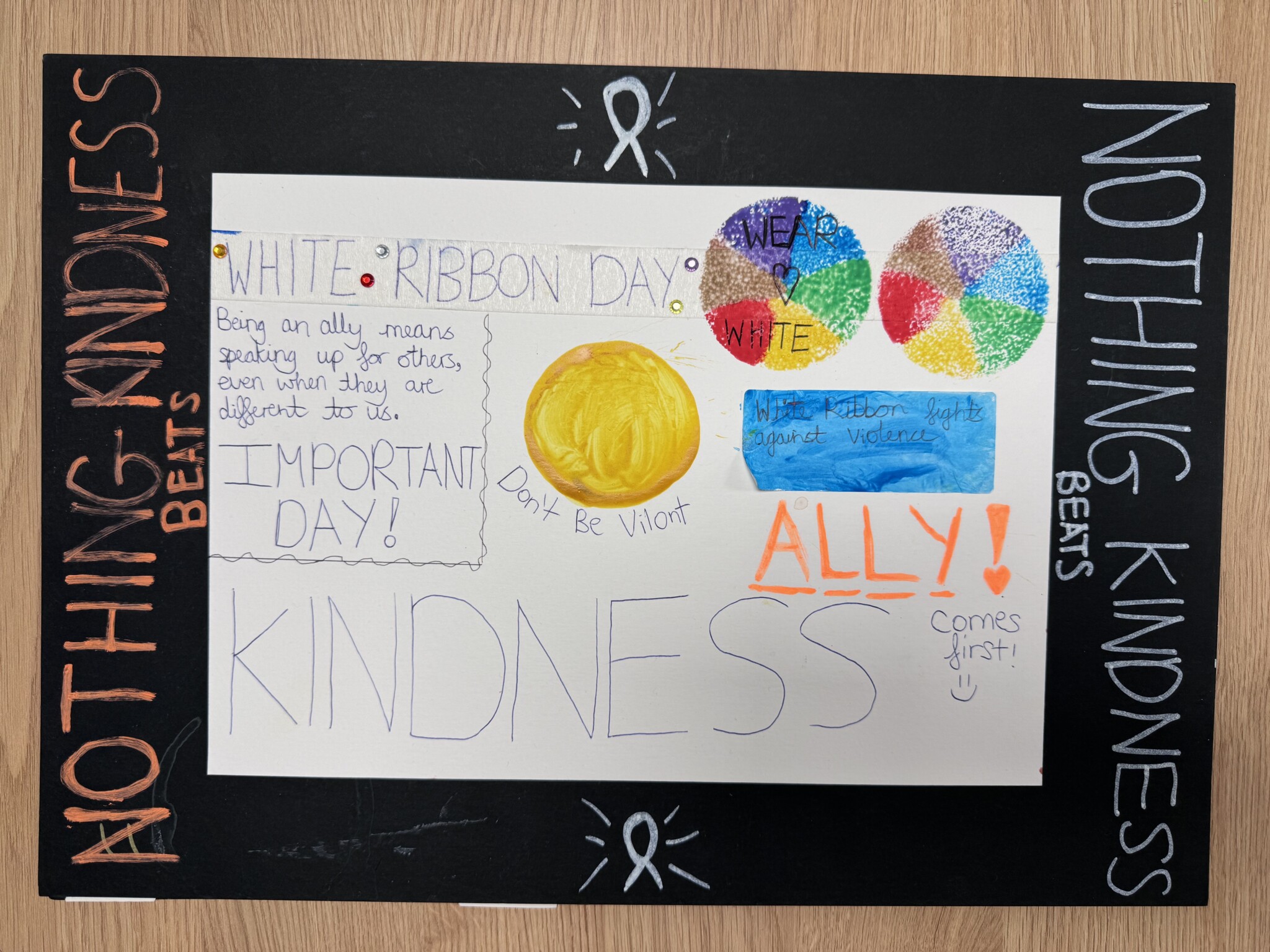 Pictured top: A poster made by Streatham Wells Primary School supporting the work of the White Ribbon charity (Picture: Sarah Wordlaw)