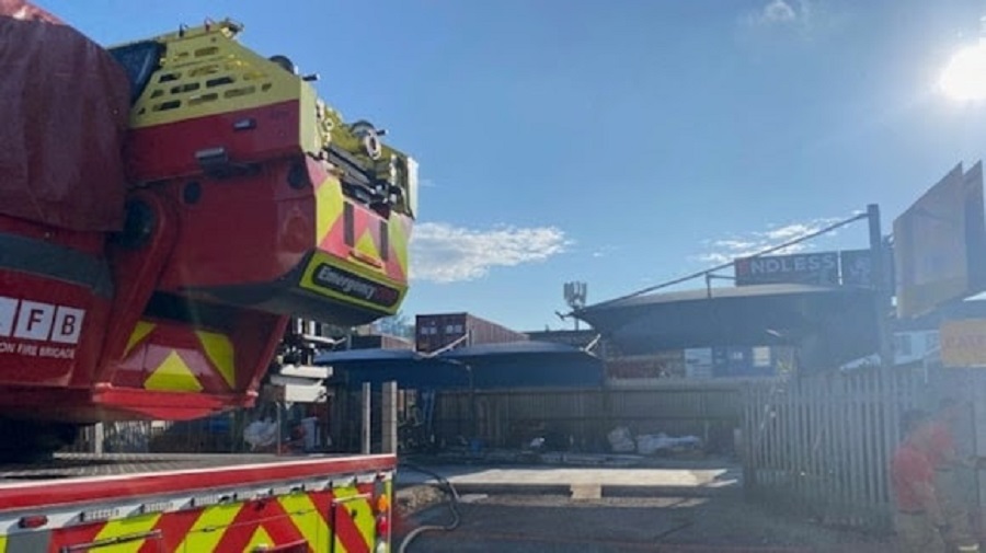 A 3mx3m area of scrap metal was destroyed by the fire. One man was treated on the scene by the London Ambulance Service.