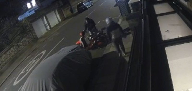 A still taken from a CCTV camera which recorded the moment when two men abandoned the bike they had been riding