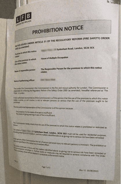 A prohibition order from the London Fire Brigade was given to the property owner earlier this year (Picture: Romulo Plank)