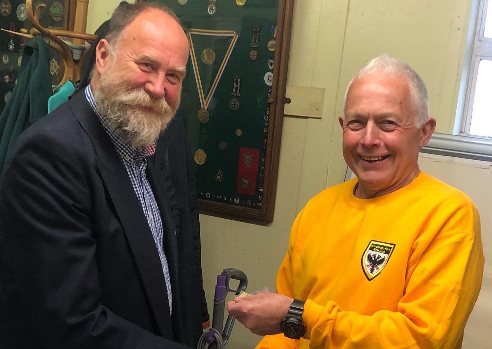 Pictured top: Jon Leech, president of Wimbledon Park Rifle Club (left) presenting a medal to competitor Keith Ealey (Picture: Bernie Ealey)