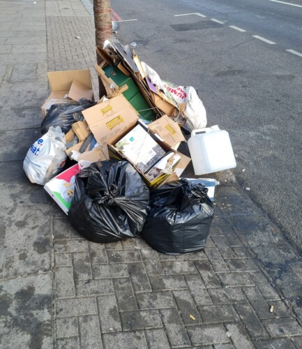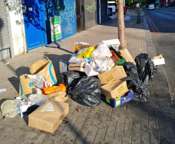 Pictured top: Unmarked commercial waste left on Edgware Road, Westminster (Picture: Westminster City council)