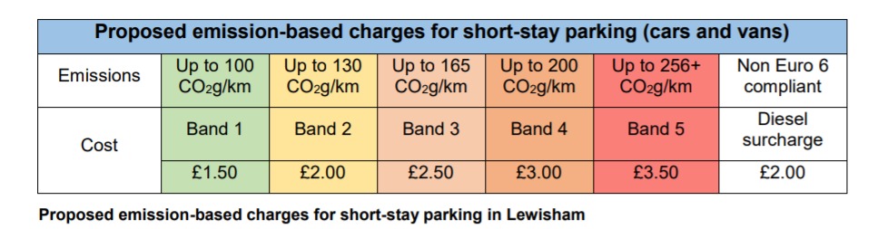 Lewisham approved borough-wide emission-based parking charges in January 2020.