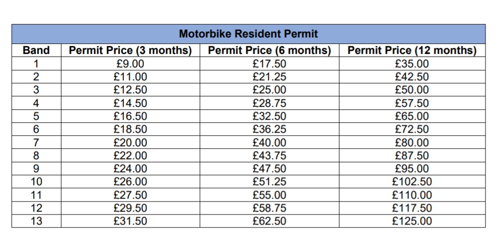Parking permits and charges for motorcyclists, if approved, would also follow a banded system.