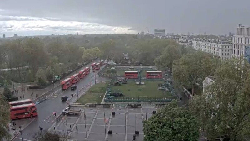 A live stream is showing the building work on the 25m high grass-topped temporary viewing platform at Marble Arch Mound.