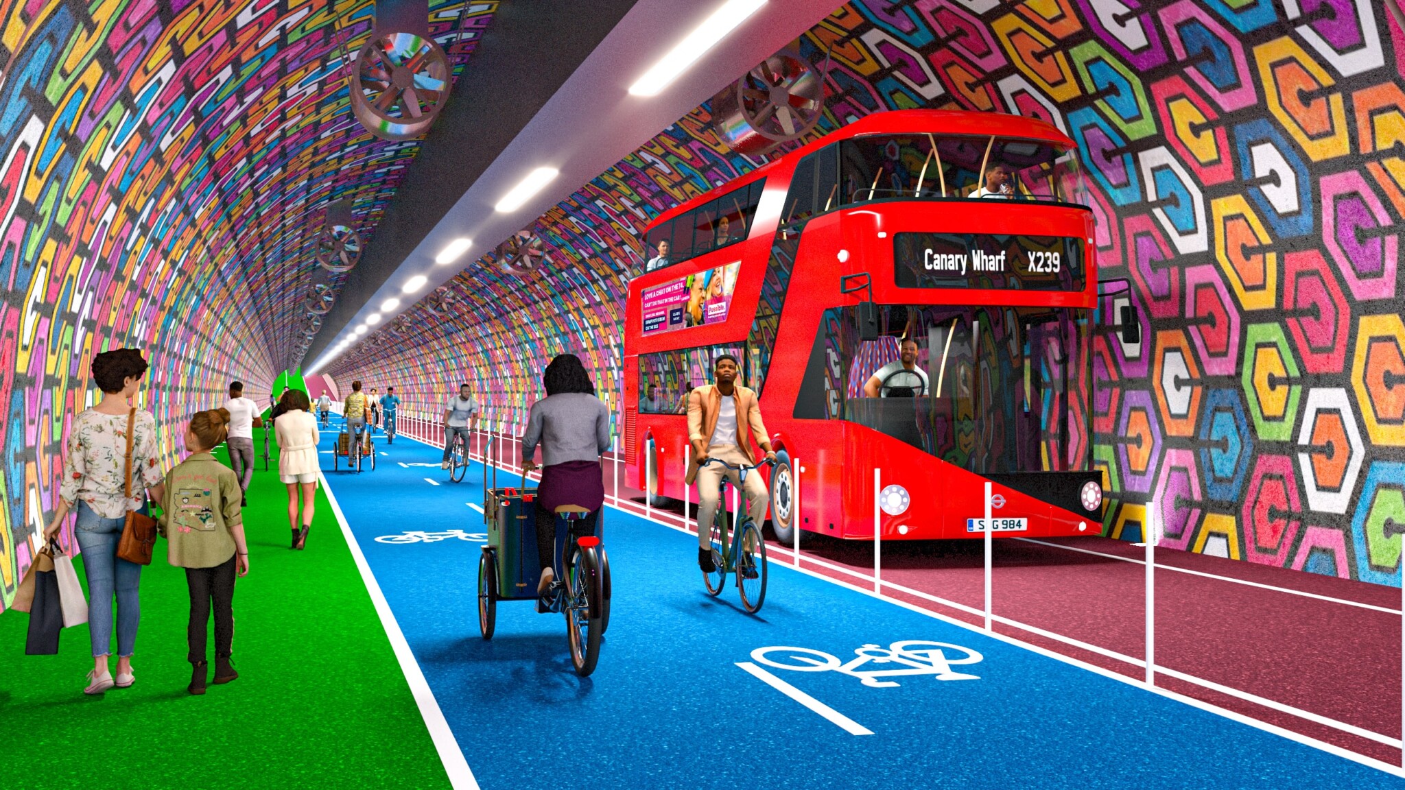 The proposal suggests creating a Docklands Light Railway (DLR) extension to the tunnel, along with provision for walking, wheeling, cycling and buses.