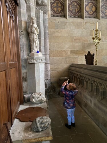 Orla’s picture features a seven metre, internally lit installation created by artist Luke Jerram, which is suspended in the Priory Church.