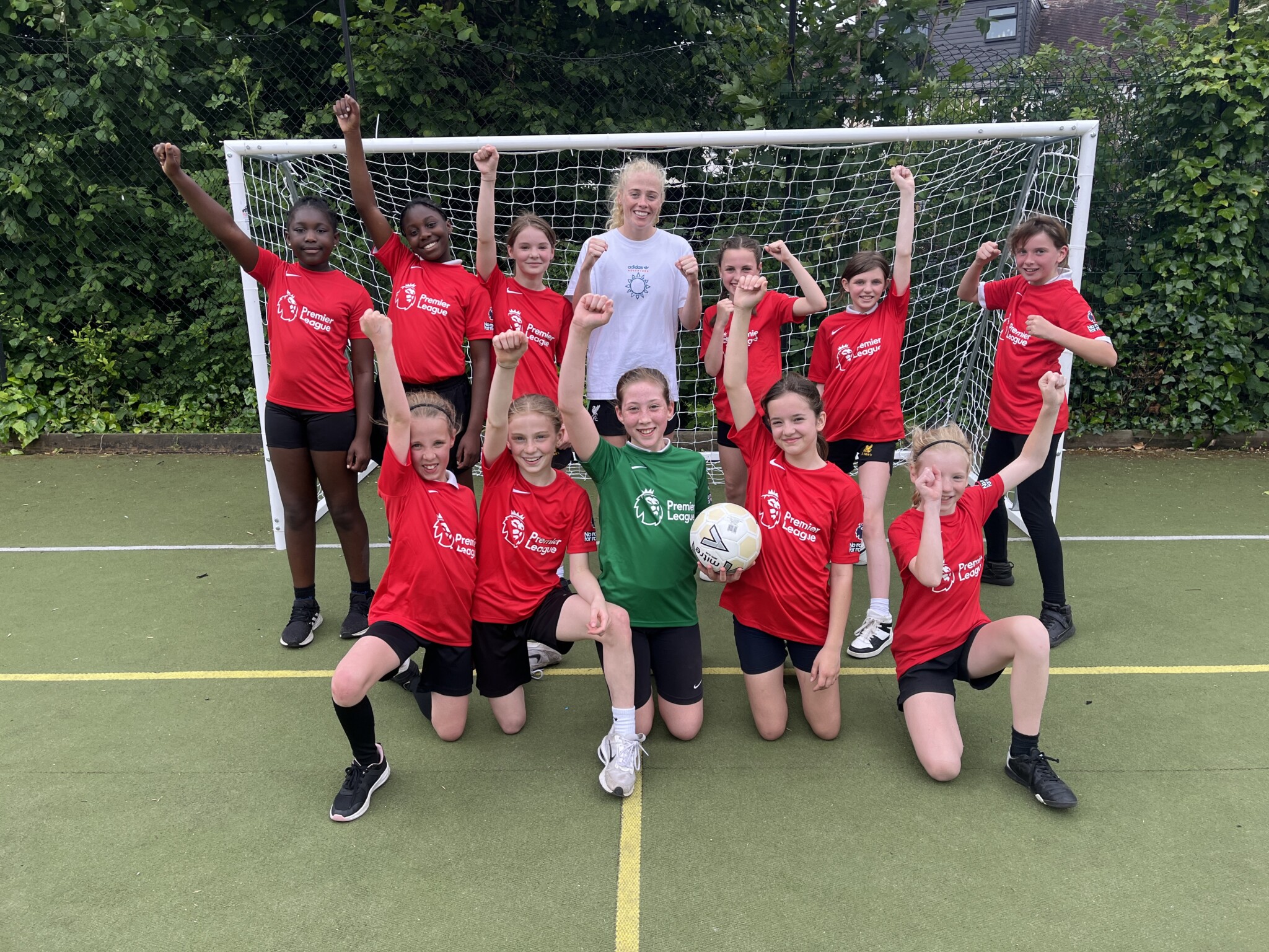 During her visit, Ms Fisk played football with the children and answered questions about life as a professional athlete.