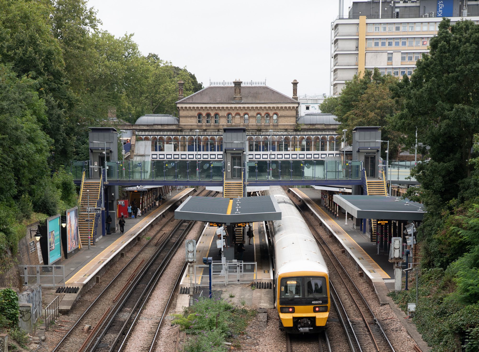 Pictured top: Denmark Hill with its array of solar panels above platforms (Picture: GTR)