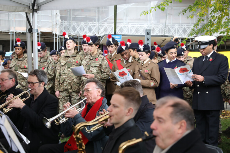 In Lambeth, MPs, veterans, military personnel, and guests gathered at The African and Caribbean War Memorial in Windrush Square, Brixton, for a minute’s silence before a Military parade marched through the square.
