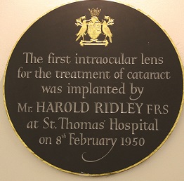 A plaque was installed at St Thomas’ Hospital, in Waterloo to commemorate the first lens implantation in 2001.