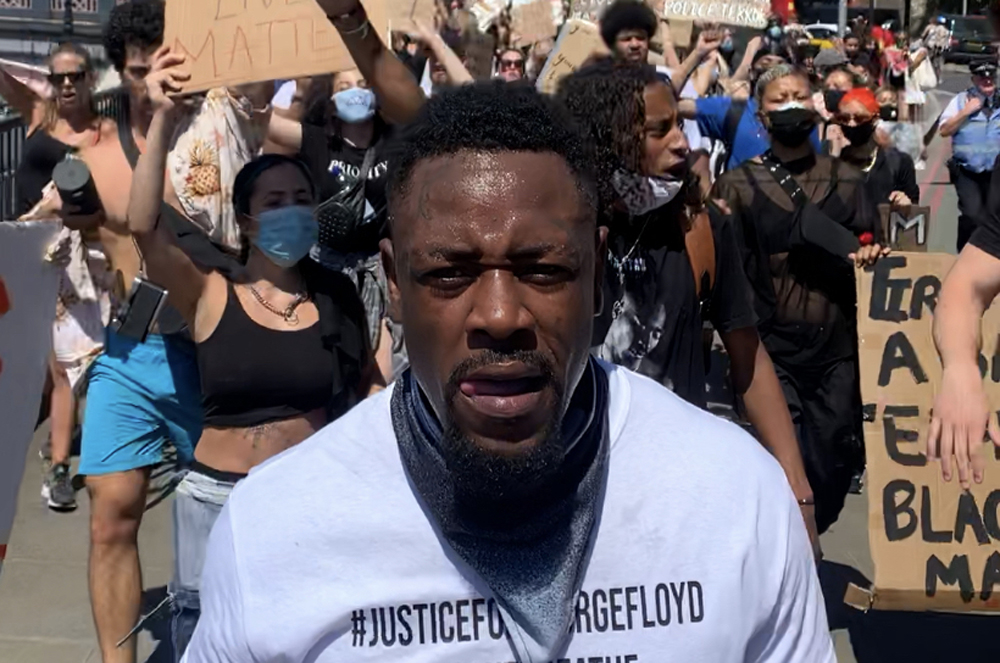 On Sunday May 31st, he led a peaceful Black lives Matter protest which began at the House of Commons in Westminster and marched to the US Embassy.