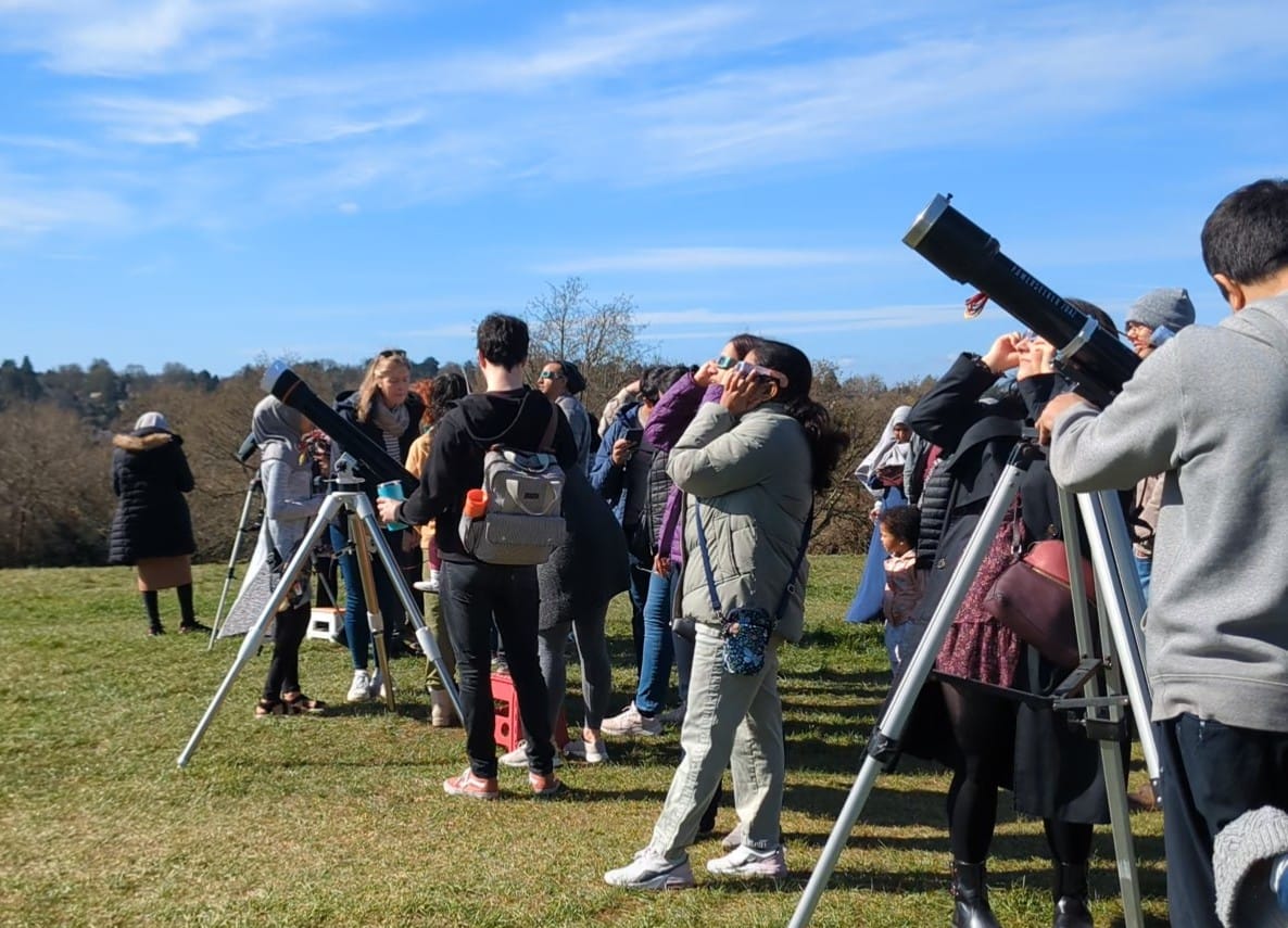 Pictured top: Avid skygazers gather in Riddlesdown Common to catch a glimpse of the solar eclipse (Picture: South London Astronomical Society)